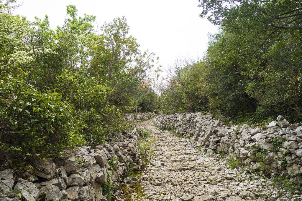 L’aspect de la Mer de Rochers devait être bien différent en remontant dans le passé. Pendant des siècles, on cultivait des cerisiers, des figuiers et des micocouliers entre ces géants de pierre. La raison, c’est la « terra rossa », un terre argileuse très fine et très riche. Tout pousse ici, un véritable jardin suspendu. Mais l’exploitation de ces cultures devenant trop pénible, les habitants y ont mit fin. Depuis, la garrigue et les chênes verts repoussent un peu partout et réduisent d’autant plus la visibilité de cette Mer de Rochers