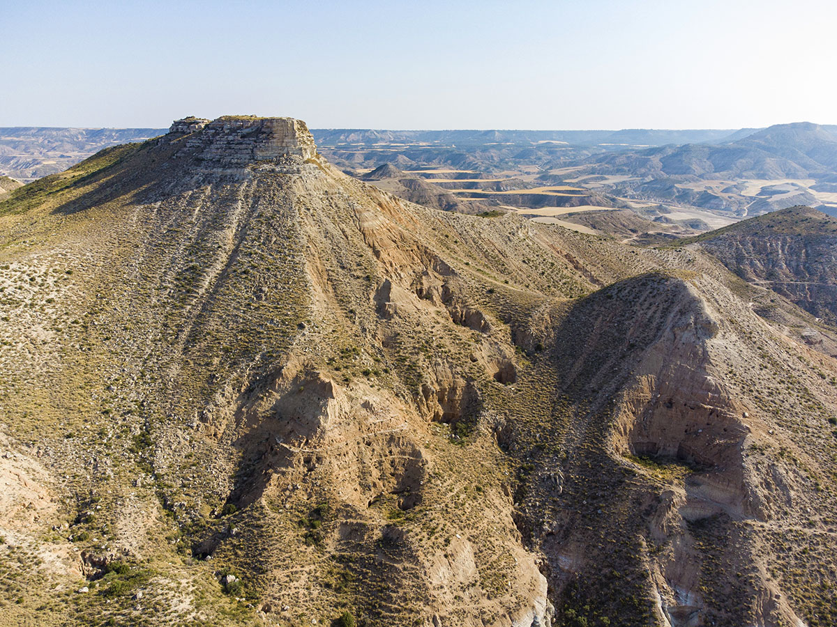 En bonus, je vous présente un autre endroit très beau à découvrir. Cette fois, il faut se rendre dans la Bardena Negra, à une quarantaine de kilomètres d’Arguedas. Ici, le site qu’il faut voir, c’est Pena del Fraile. C’est un joli sommet qui culmine à 557m, au dessus de la Bardena Negra. Une chouette petite randonnée permet d’y grimper.