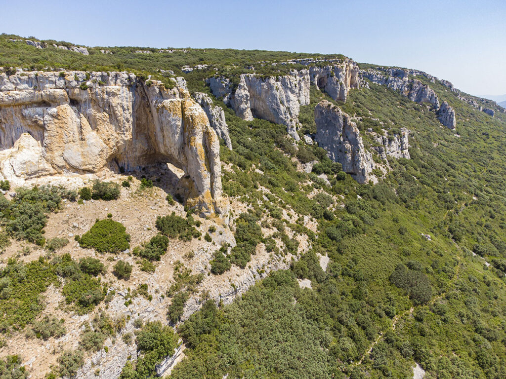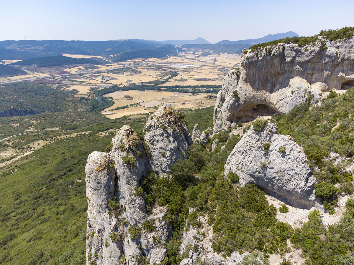Ce massif est connu des randonneurs car il abrite deux grandes arches naturelles. Rejoindre l’arche de Liroz et l’arche de Lumbier n’est pas vraiment une partie de plaisir. Si vous souhaitez les voir, ce sera une autre randonnée! 🙂 Depuis le parking de la piscine municipale de Lumbier (ou alors depuis le parking du canyon), il faudra gravir le massif jusqu’à l’ermitage de la Trinidad. Ensuite, il faudra suivre un sentier balisé de points rouges au sol, et pas forcément facile à suivre dans la végétation. En longeant de très près le précipice, il faudra descendre par quelques passages à la limite de l’escalade en s’aidant de chaines fixées dans la roche.