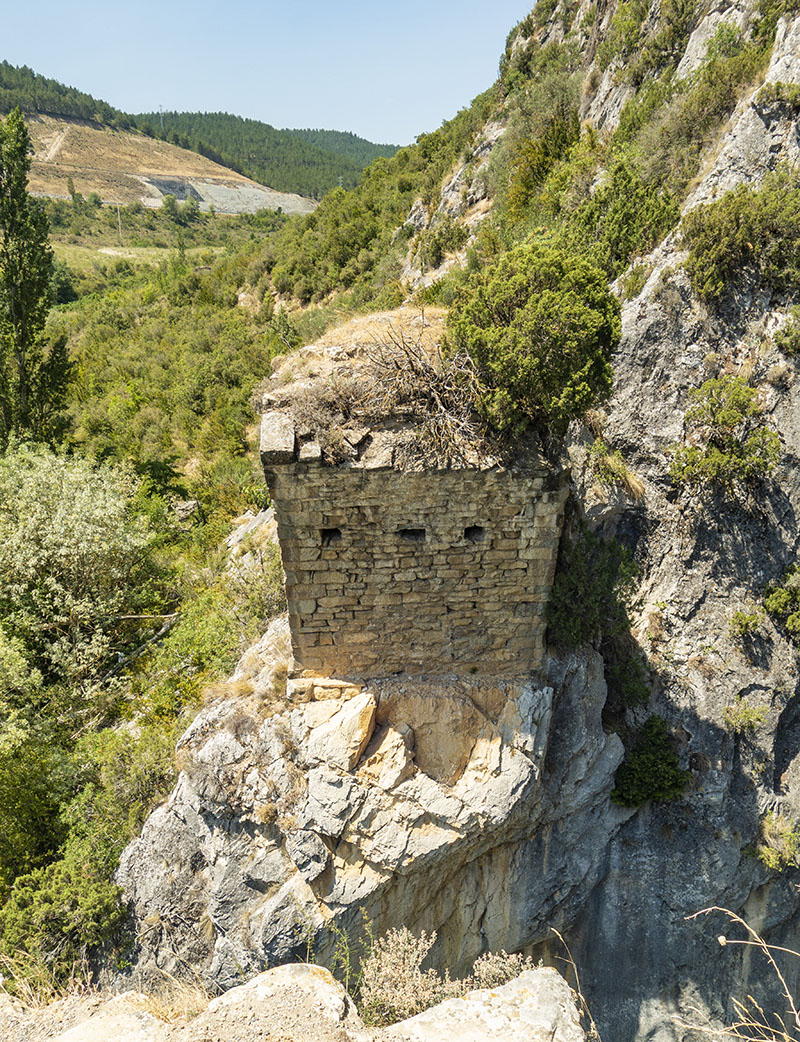 À une trentaine de kilomètres vers l’est, on quitte brièvement la province de Navarre pour rentrer en Aragon. Là, se trouve le grand lac de barrage de Yesa. Avec une longueur de 10km et une largeur de 2km, ce lac artificiel est parfois surnommé la mer des Pyrénées. Même si ce vaste projet devant permettre l’irrigation de nombreuses terres de la région a vu le jour en 1926, ce n’est qu’en 1959 seulement que le barrage a été inauguré. Sa mise a l’eau a forcé l’abandon de trois villages : Ruesta, Tiermas et Esco.