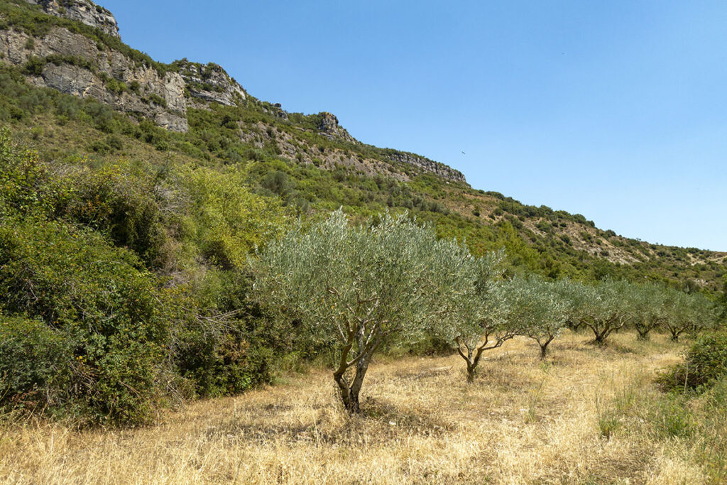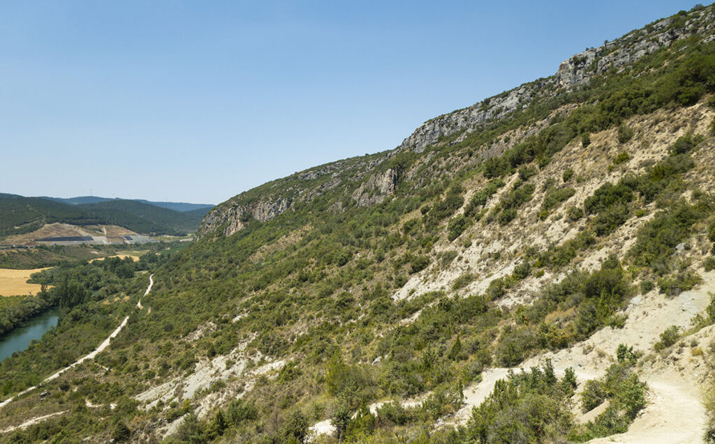 Si vous avez choisi de faire la boucle, il faut continuer sur le sentier. Après une petite montée à travers la végétation grillée par le soleil ibérique, on longe la crête du massif de Trinidad.