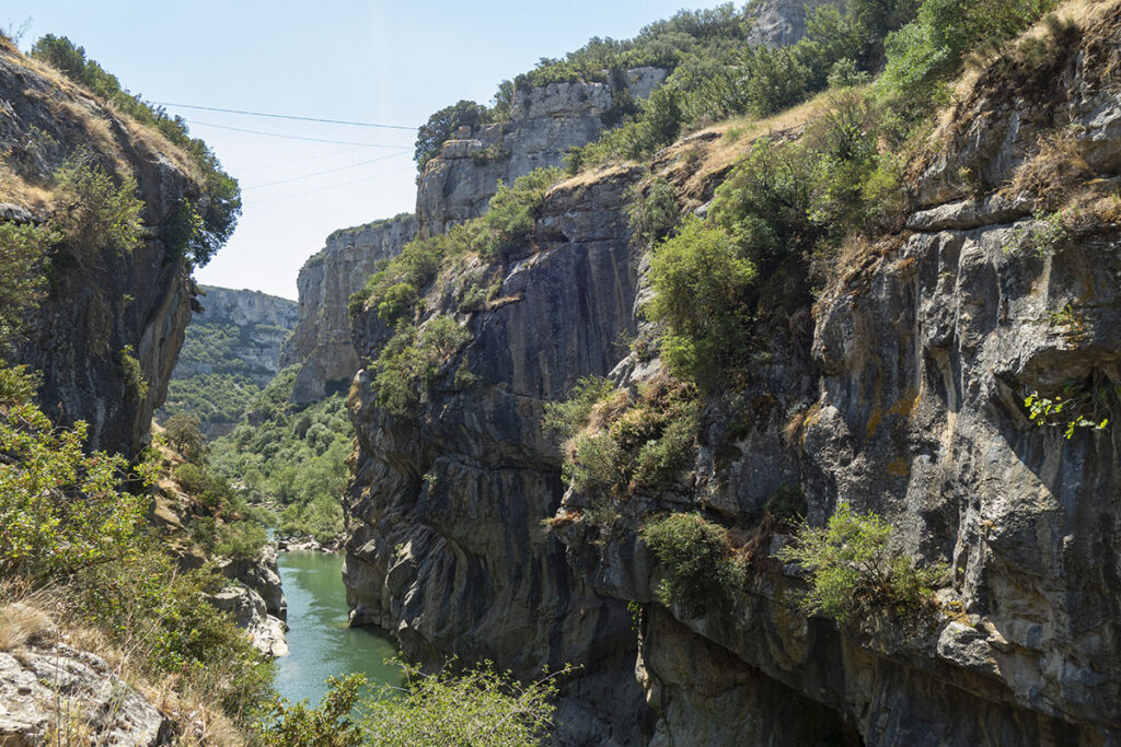 Si vous en avez l’occasion, à une vingtaine de minutes en voiture à peine depuis Foz de Lumbier, il y a un autre canyon à découvrir. Et ce n’est pas n’importe quoi, c’est le canyon Arbaiun. Cette fois, c’est l’œuvre de l’érosion réalisée par le fleuve Salazar. Le résultat c’est un canyon de 6km de long avec des falaises qui atteignent une hauteur de 400m! C’est juste le plus grand canyon de Navarre. Il y a même un magnifique point de vue très facilement accessible en voiture. C’est le Mirador de Iso. Malheureusement, ce n’était pas sur ma route cette fois là, mais je vous promets, ça vaut le coup! 🙂