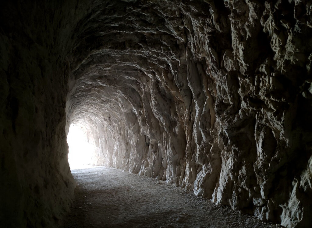 Dès le début, il faudra traverser un premier tunnel (167m de long). Il y a un autre tunnel (206m) un peu plus loin. Ils ne sont pas éclairés, alors pensez à la lampe de votre téléphone. Ces tunnels ont été creusés pour permettre le passage du train « El Irati ».
