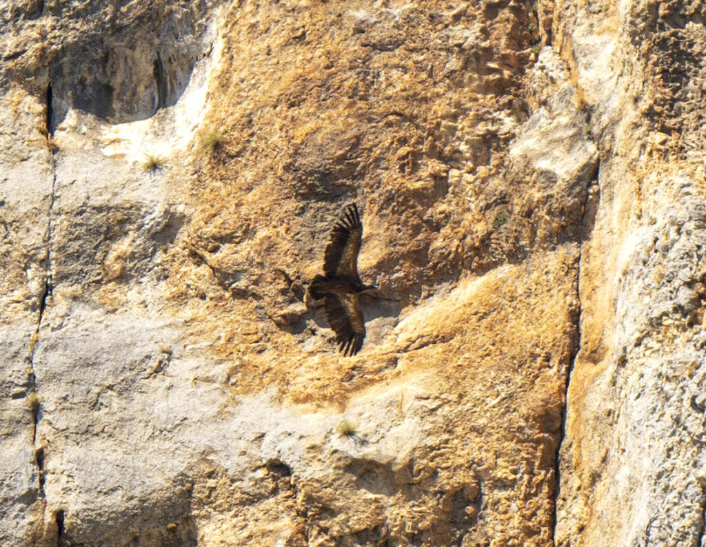 Les plus nombreux et les plus remarqués sont les vautours fauves. Des gypaètes barbus et des vautours percnoptères (tout blancs) vivent aussi dans les parages. Il y a aussi plein d’autres espèces emplumées que j’aurai bien du mal à identifier. En tout cas, si vous aimez les oiseaux, vous serez comblés 🙂