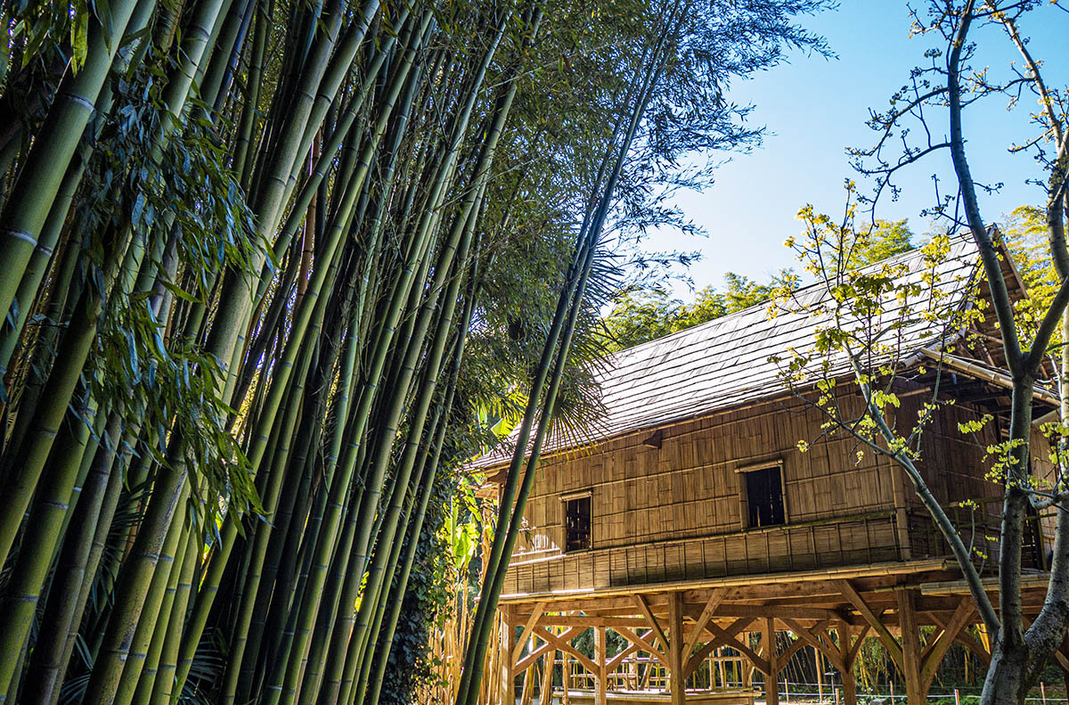 Dès l’entrée, la forêt de bambous géants vous enveloppe dans une atmosphère de jungle apaisante. On est rapidement transporté en Asie du Sud-Est en découvrant un village laotien! 🙂 Il a été construit par un membre du personnel originaire du Laos et son équipe.