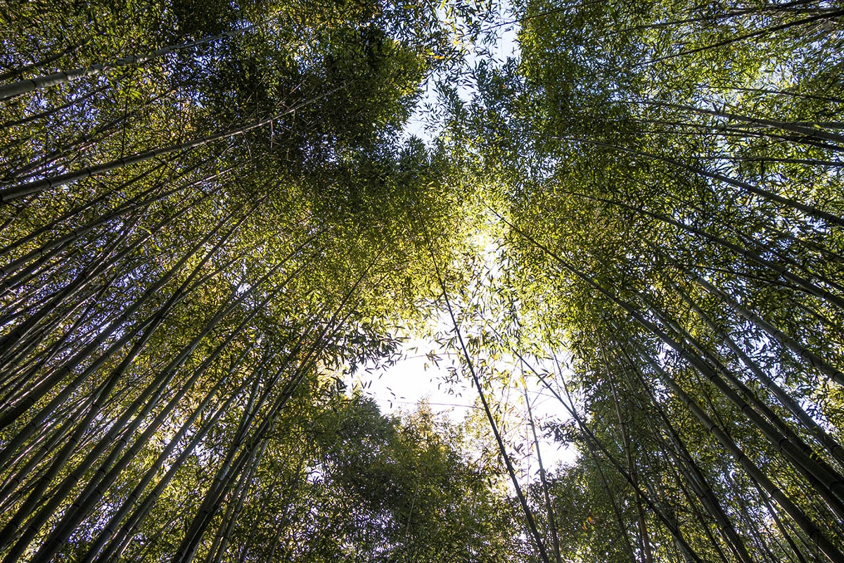 On quitte ensuite le Japon pour se perdre dans une prairie de bambous. L’imagination continue de voyager, on est bercé par le doux bruissement de ces milliers d’immenses bambous. Les tiges élancées, pouvant atteindre 25 mètres, filtrent la lumière et créent un jeu d’ombres fascinant.