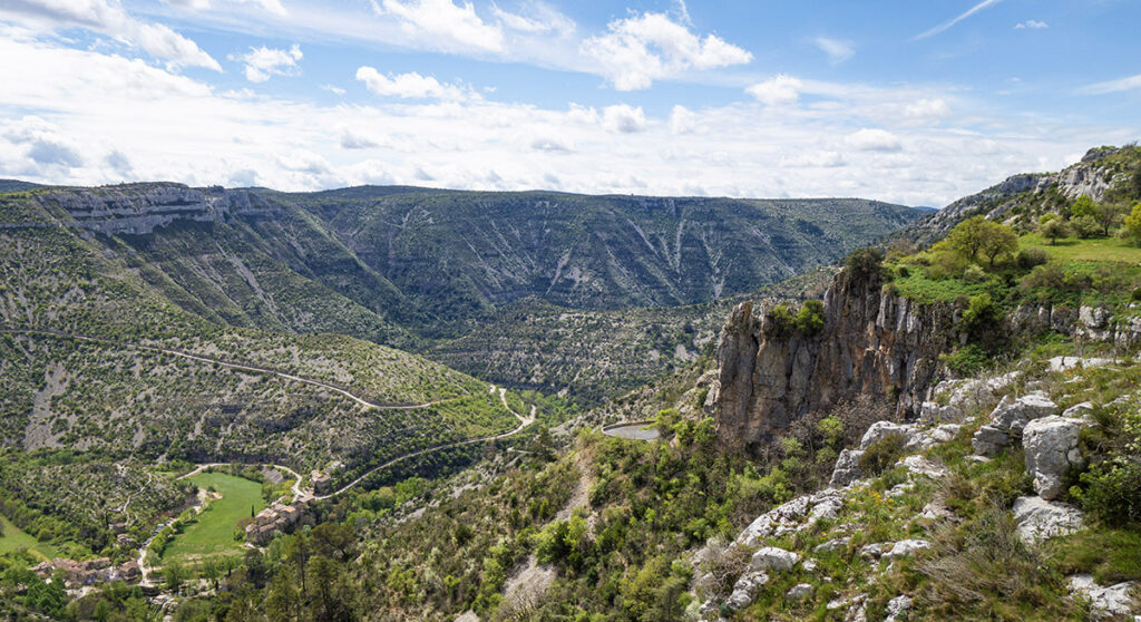 C’est un des canyons les plus larges d’Europe! Il a été patiemment creusé par la rivière de la Vis pendant des millions d’années. Le long de ces falaises vertigineuses, on a retrouvé des grottes habitées depuis la préhistoire (comme la grotte du Roc-du-Midi).
