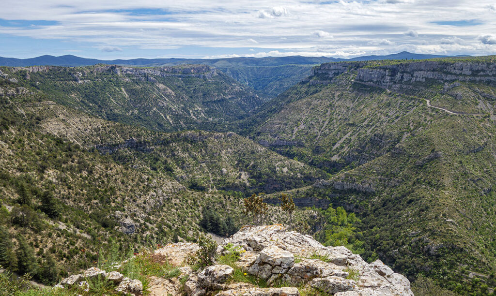 À la frontière entre le département du Gard et de l’Hérault, entre le Causse de Blandas (côté nord) et le Causse du Larzac (côté sud), se trouve un site naturel incroyable. Après avoir traversé le grand plateau aride du Causse de Blandas qui semble s’étendre jusqu’à l’horizon, on ne s’attend pas à un pareil paysage. Comme une faille vertigineuse qui éventre la terre, on arrive devant les Gorges de la Vis 🙂