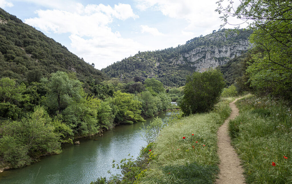 Le point de départ de la rando se trouve au petit parking (gratuit) de la Cascade du Moulin, à moins d’un kilomètre de l’entrée du village de Saint-Guilhem-le-Désert. Dès le début, il faudra rentrer dans le dur, et prendre le chemin sur la gauche qui grimpe par le Saut de la Pansière à travers la sauvage Combe Brunan.