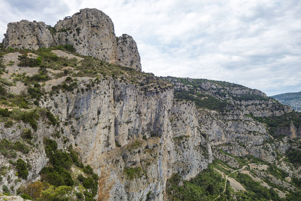 On continue la rando! Hop on suit le sentier qui descend. Il longe les immenses falaises de calcaires hautes de 400m! On attrape vite le torticolis à force de regarder les sommets 🙂