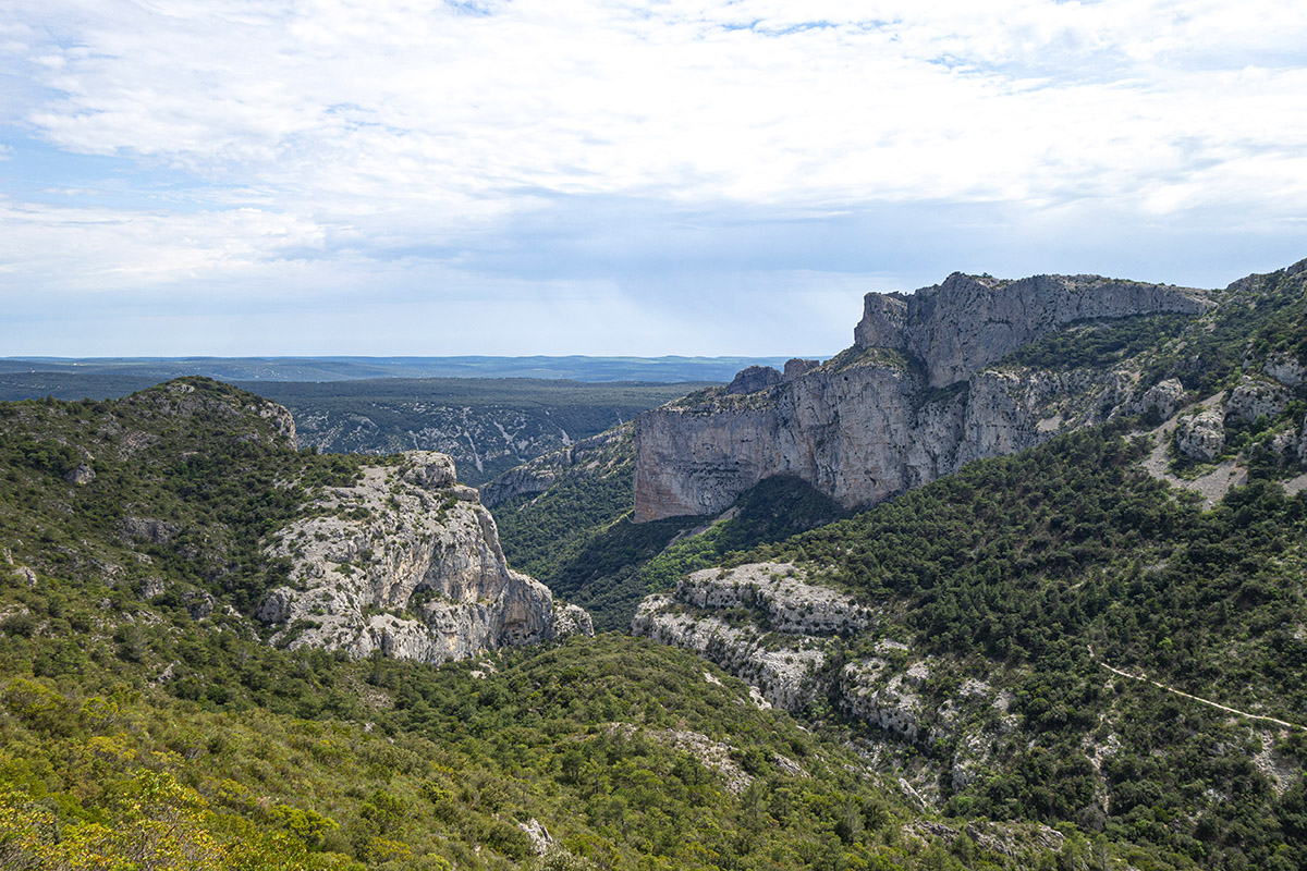 Le Cirque de l’Infernet c’est cette énorme muraille de pierre qui marque la fin du Val de Gellone où coule le Verdus. C’est littéralement le « bout du monde » pour le village de Saint-Guilhem-le-Désert. L’endroit est véritablement majestueux et les photos ne rendent pas honneur à la beauté des lieux. C’est vraiment grandiose 🙂
