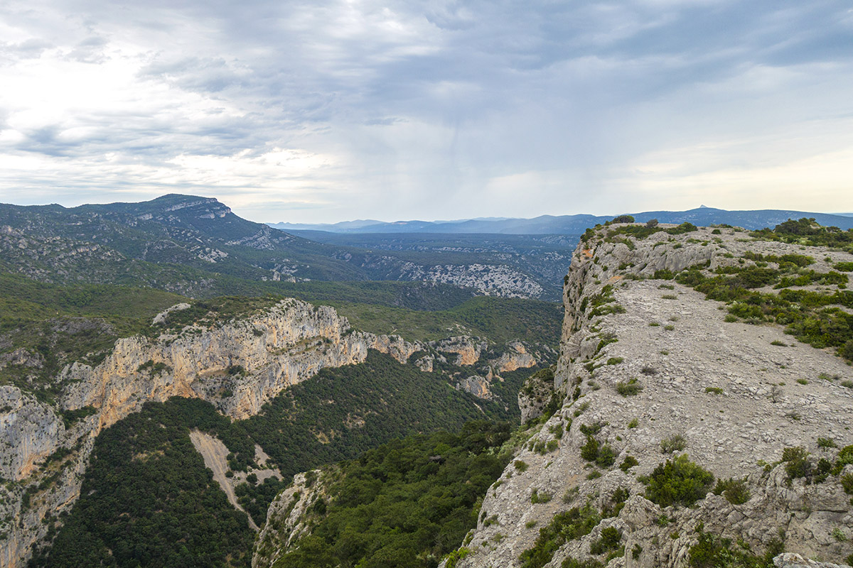 Le sentier serpente à travers la jolie garrigue jusqu’au belvédère de Brunan. Il domine la Combe de Brunan. En face, c’est le Cirque de Brunan. Bref, tout ce coin s’appelle Brunan, c’est Brunan-joli quoi 🙂