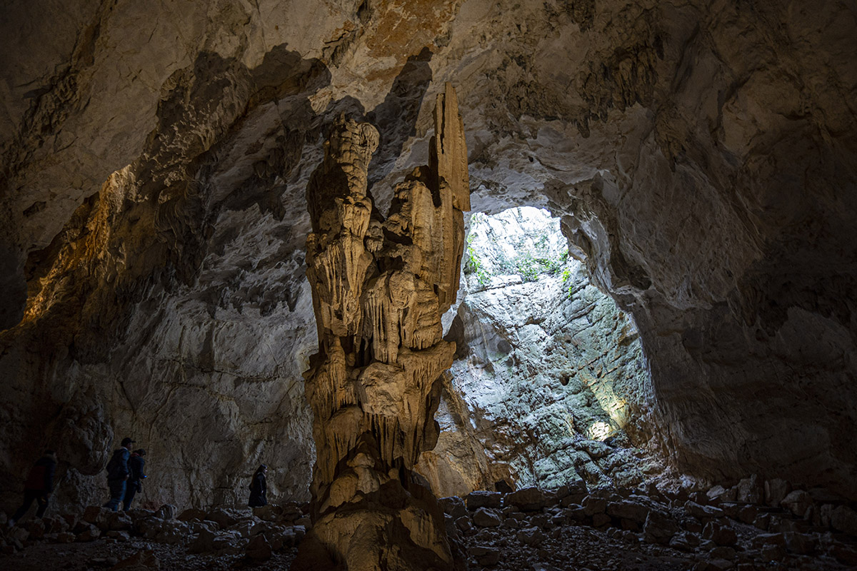 La visite passe aussi sous l’entrée naturelle. C’est par ce chemin que des animaux et des humains descendaient dans la grotte par accident ou pour se mettre à l’abri.