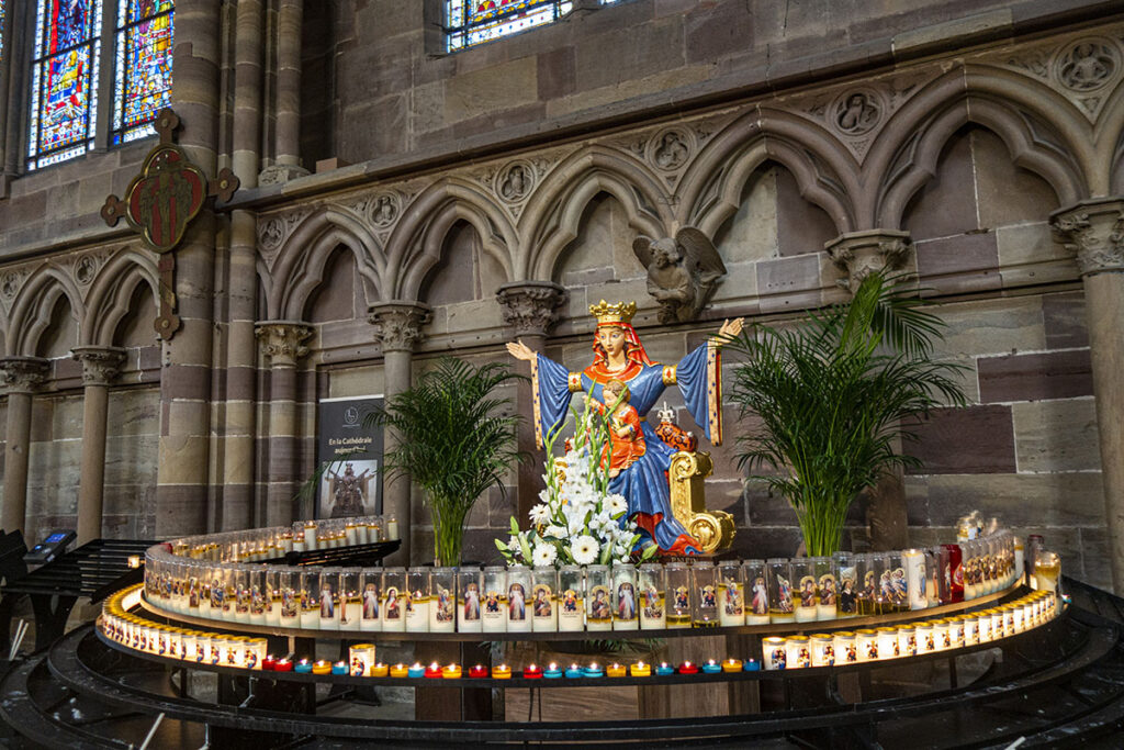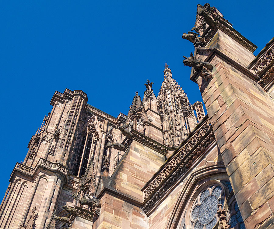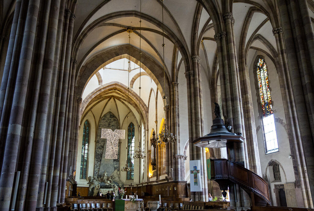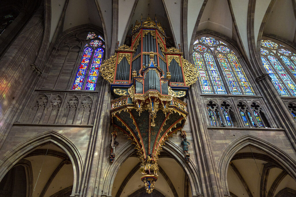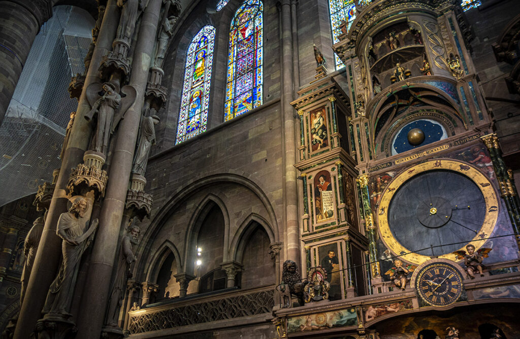 Vous découvrirez par exemple la très belle chaire de pierre réalisée au XVe siècle pour le prédicateur Jean Geiler. C’est un formidable chef d’œuvre avec des sculptures fines et délicates. Insolite, cette chaire abrite un petit chien sculpté. Il a été rajouté en référence au chien du prédicateur qui l’accompagnait toujours quand il montait pour faire ses sermons. Depuis, cette sculpture est un peu devenue la mascotte de la cathédrale. Caressée par des millions de mains, la pierre du petit chien est devenue toute noire!