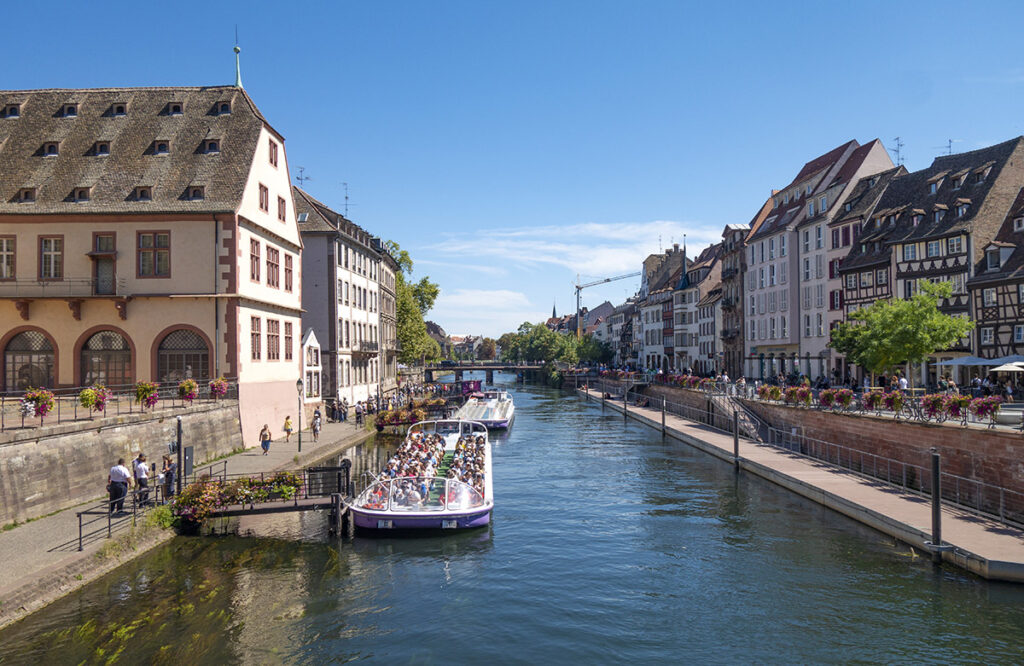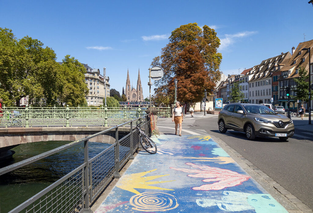 Ensuite, hop on enjambe le Pont du Faisan pour traverser la rivière de l’Ill. C’est un pont mobile construit en 1888, qui s’ouvre régulièrement pour laisser passer les bateaux-mouches. Il remplace l’antique pont en bois du XIVe siècle.