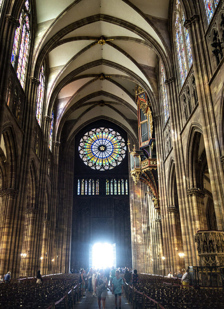 Quand la Seconde Guerre Mondiale arrive, les vitraux sont mis à l’abri. D’abord cachés par la France en Dordogne, ils seront finalement rendus aux nazis et entreposés dans une mine de sel en Allemagne! Hitler projette de la transformer et d’en faire un Mémorial pour les Soldats Allemands. Ca faisait parti de son grand projet pour faire de Strasbourg une nouvelle mégalopole du Reich. En attendant, il y interdit le culte catholique et la cathédrale est fermée jusqu’à nouvel ordre. Finalement elle subira les bombardements des alliés en aout 1944. Enfin, de longs travaux de rénovation seront lancés dans les années 1960 et dureront des décennies! Ouf, maintenant la cathédrale est belle et elle n’attend plus que vous 🙂