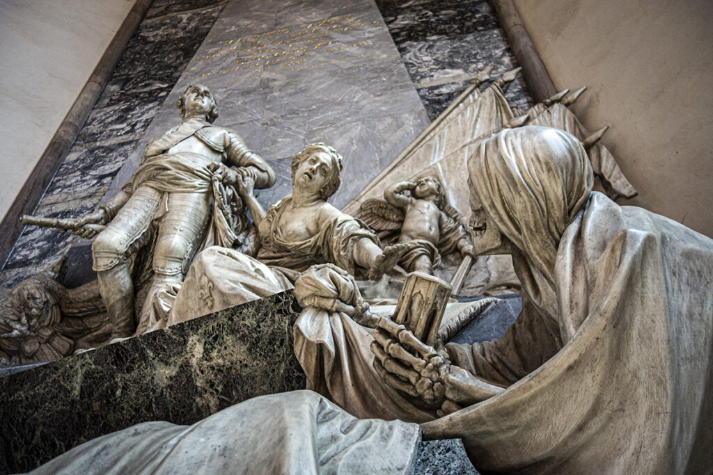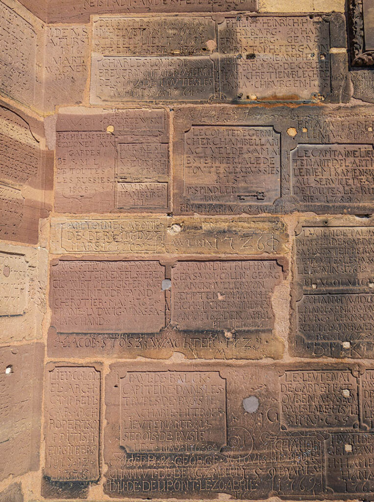 Dans l’église on peut découvrir l’ancien sarcophage en grés rose de l’évêque Adeloch mort en 1130. Mais c’est surtout le fond de l’église qui attire le regard, avec le magnifique mausolée du maréchal Maurice de Saxe. C’était un officier d’origine allemande (et protestant) qui a victorieusement commandé les troupes de Louis XV dans plusieurs conflits. Après sa mort en 1750 dans son Château de Chambord, on lui refuse le droit d’être enterré à Paris. On envoie donc sa dépouille dans la plus grande ville protestante du royaume, et le roi passera commande de ce grand mausolée qui mettra vingt ans à être sculpté!