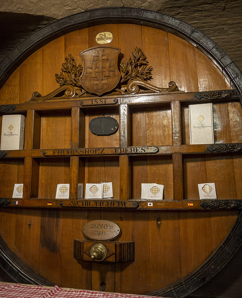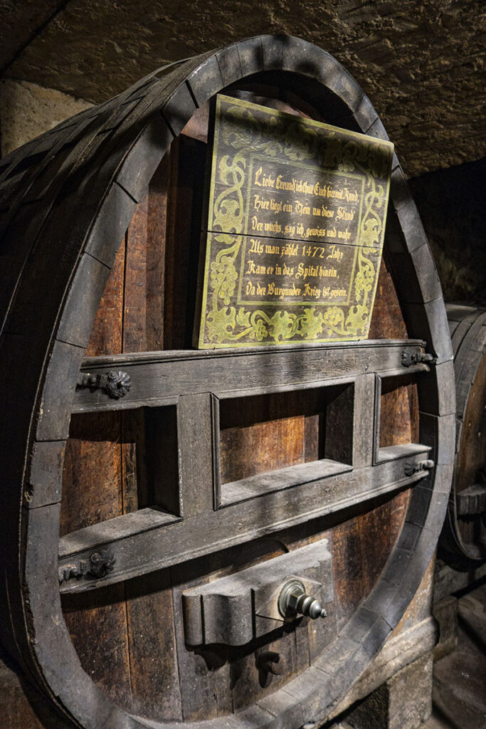 Ce fameux millésime 1472 n’a été servi qu’à trois reprises : en 1576 (pour remercier les Zurichois venus au secours de la ville), en 1718 (après la reconstruction de l’hôpital) et en 1944 pour le Général Philippe Leclerc qui a libéré la ville. La cave abrite aussi un petit espace musée et on peut y découvrir un des plus grands tonneaux des hospices. Il date de 1881, avec une contenance de 26 080 litres. Ca en fait des bouteilles! La visite des caves historiques des hospices est libre et gratuite. La Cave se situe à l’intérieur de l’Hôpital Civil (côté centre-ville), au sous-sol du bâtiment de la Direction Générale (services administratifs). Il suffit de suivre le panneau. N’hésitez à déguster (avec modération) et acheter (sans modération) en boutique, c’est pour la bonne cause! 🙂