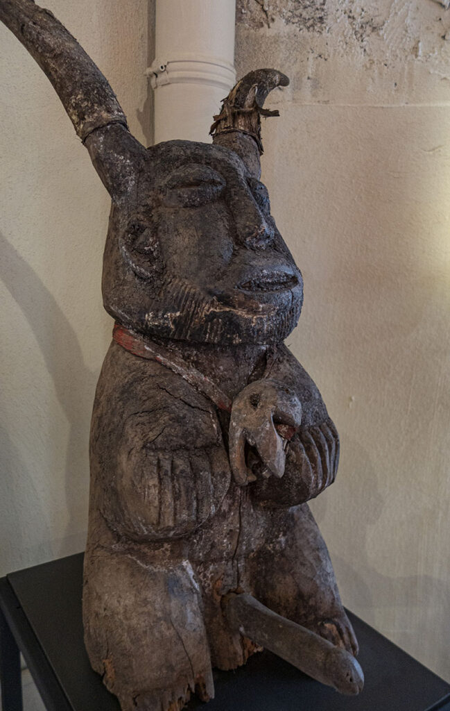 Après l’achat du billet d’entrée (14 eur) on peut découvrir la plus grande collection d’objets vodous africain au monde. Cette collection privée présente des pièces venant principalement du Bénin, du Togo, du Ghana et du Nigéria. Le vaudou représente un ensemble de divinités, leurs incarnations en iwas sous plusieurs formes, et les pratiques pour se mettre en relation avec ce monde invisible. Les pratiques magiques du vaudou ont survécus en secret malgré la répression des colonisations en Afrique, et elles se sont même propagées dans le monde à cause de l’esclavagisme.