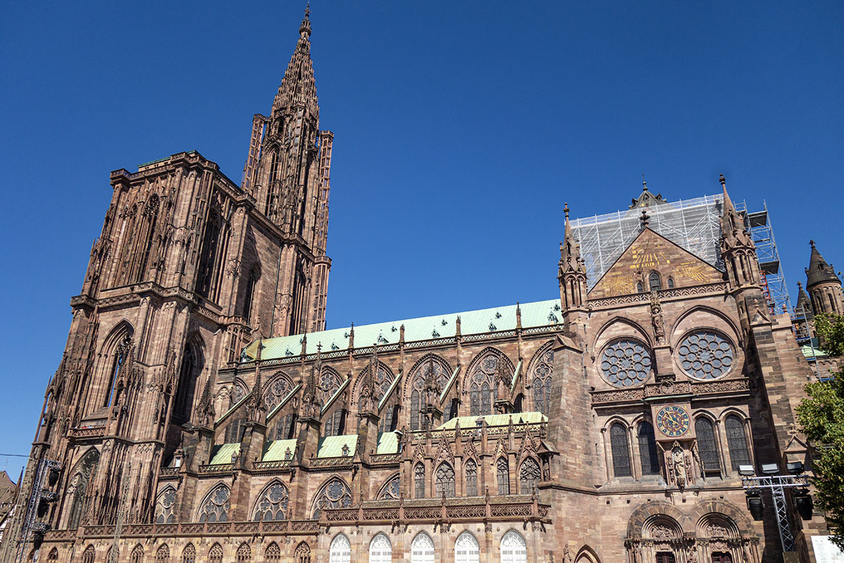 Quand la Seconde Guerre Mondiale arrive, les vitraux sont mis à l’abri. D’abord cachés par la France en Dordogne, ils seront finalement rendus aux nazis et entreposés dans une mine de sel en Allemagne! Hitler projette de la transformer et d’en faire un Mémorial pour les Soldats Allemands. Ca faisait parti de son grand projet pour faire de Strasbourg une nouvelle mégalopole du Reich. En attendant, il y interdit le culte catholique et la cathédrale est fermée jusqu’à nouvel ordre. Finalement elle subira les bombardements des alliés en aout 1944. Enfin, de longs travaux de rénovation seront lancés dans les années 1960 et dureront des décennies! Ouf, maintenant la cathédrale est belle et elle n’attend plus que vous 🙂