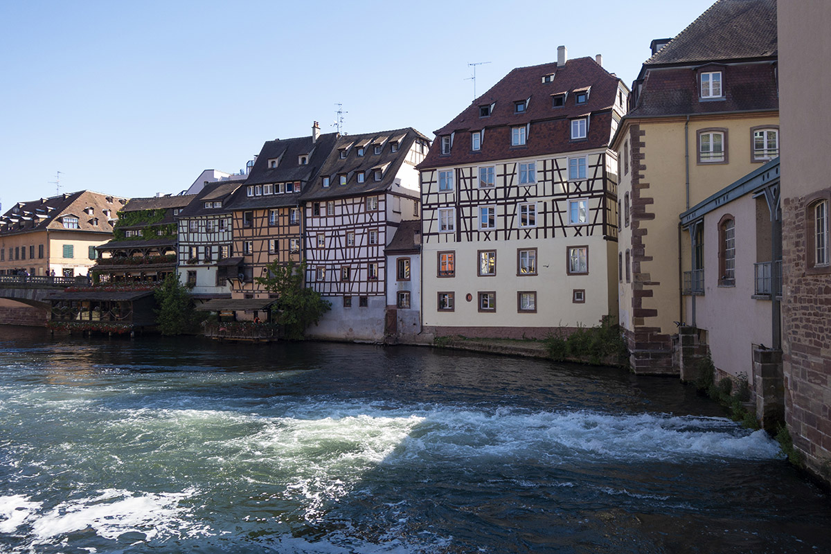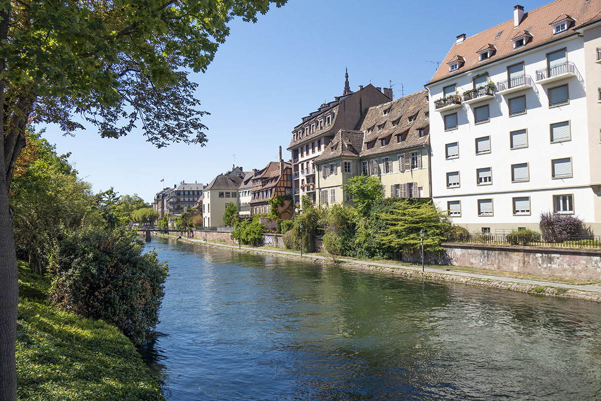 Suivons maintenant le bras de la rivière de l’Ill qui coule au sud de la grande île du centre ville historique de Strasbourg.