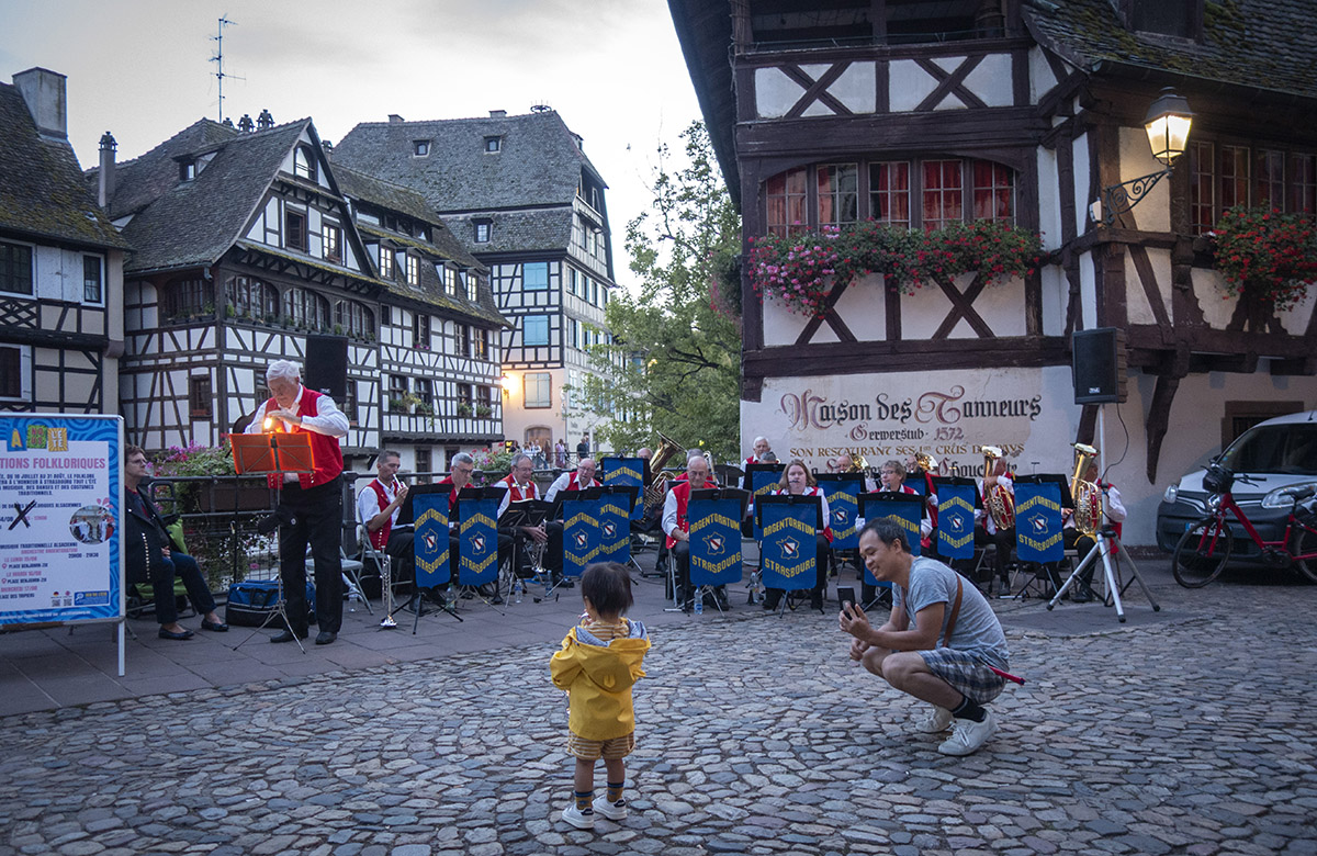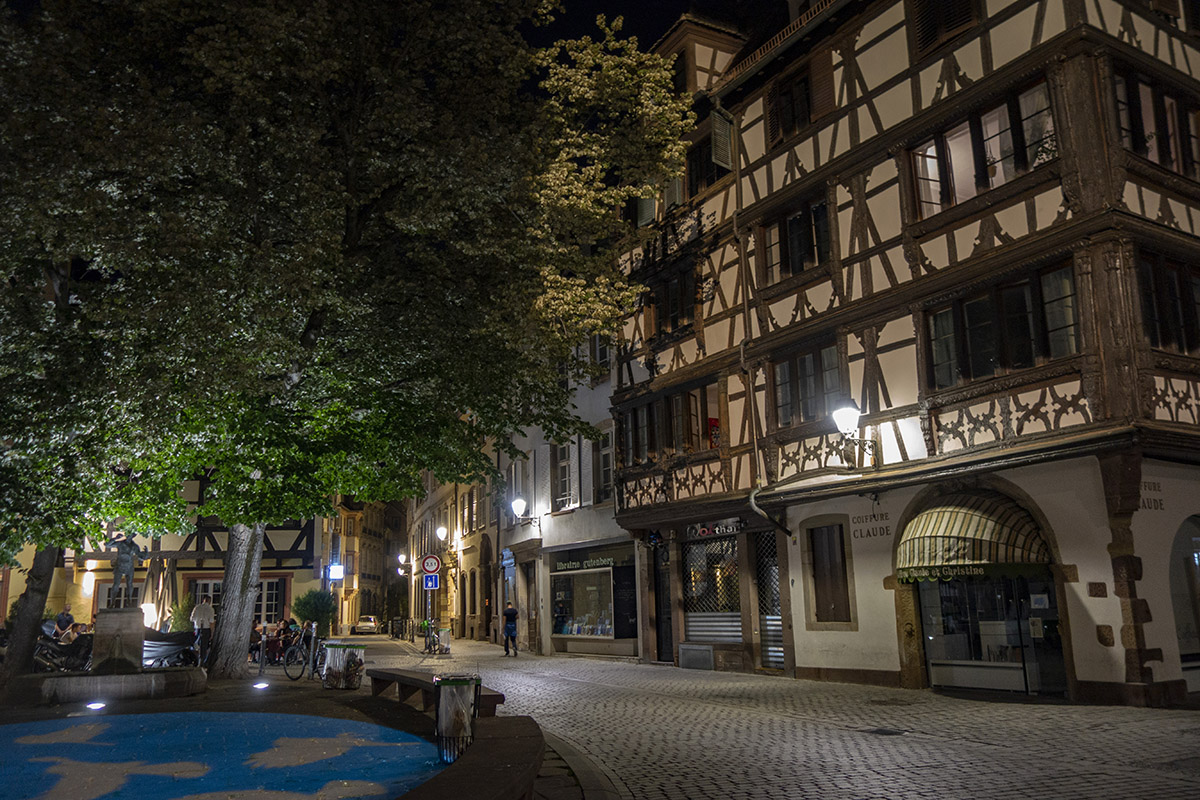 En s’éloignant un tout petit peu du pont en direction du centre ville, on arrive sur la Place Saint Etienne. C’est une jolie place médiévale pittoresque bordée des traditionnelles maisons à colombages. Entre deux tilleuls, au centre de la place, on trouve la fontaine du Meiselocker. C’est une statue reçue en 1929 de la part de la ville de Munich en échange de la statue du Père Rhin (Vater Rhein) qui ne plaisait pas du tout aux strasbourgeois (je vous laisse chercher une photo sur le net pour découvrir son fameux déhanché haha).