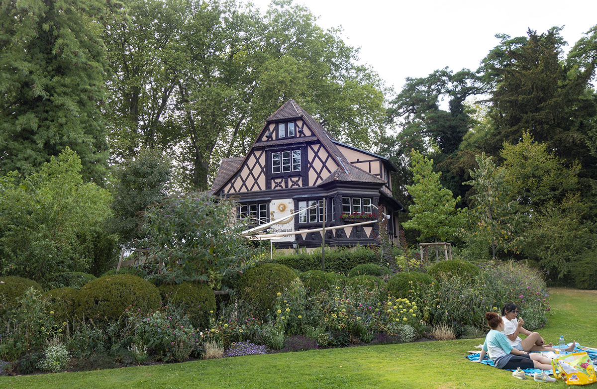 Dans le parc il y a aussi le Buerehiesel, une ancienne maison à colombages construite vers 1600 … à Molsheim, à 25km d’ici! Elle a été démontée puis remontée pièce par pièce pour l’Exposition Industrielle et Artisanale de 1895. Cette belle maison abrite maintenant un restaurant gastronomique étoilé. Pour réserver votre table, c’est sur ce site.