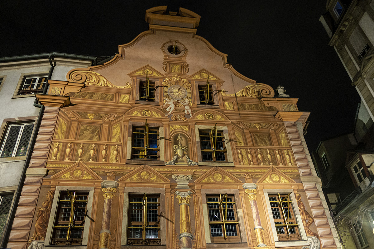 La Place Kléber est bordée par le grand bâtiment de l’Aubette. Cette ancienne caserne où les ordres étaient donnés à l’aube (d’où son nom) est maintenant à moitié un centre commercial (L’Aubette shopping) et à moitié un musée (Aubette 1928, gratuit). À deux pas de la place, ne manquez pas la façade décorée de la pâtisserie Christian au 12 rue de l’Outre. Cette peinture en trompe l’œil date de 1987 lors de la restauration de cette bâtisse du XVIe siècle. Au passage, c’est aussi la pâtisserie la plus réputée de la ville, avis aux gourmands (la carte ici) 😉