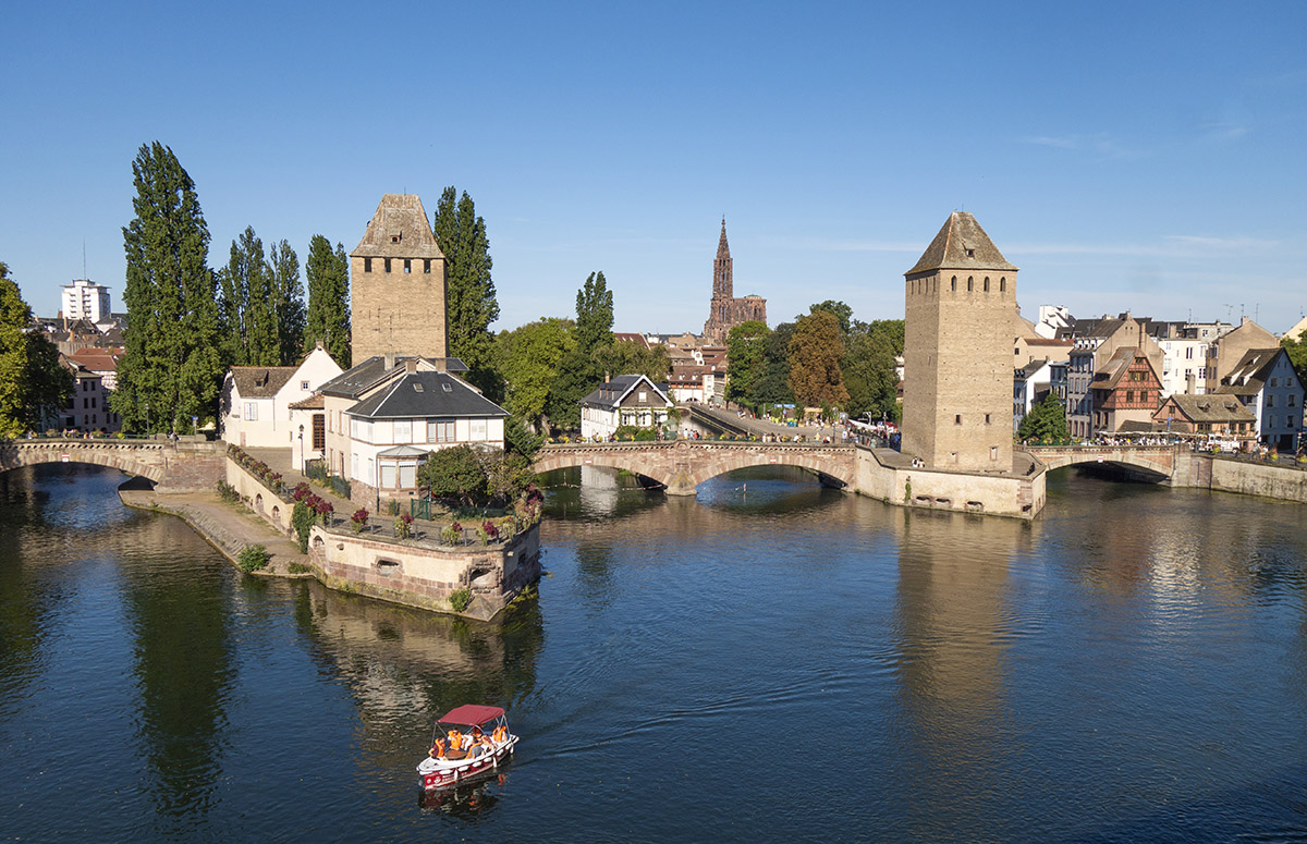 Juste à côté, on découvre les fameux Ponts Couverts de Strasbourg. Au XIIIe siècle, les bourgeois de la ville font construire quatre ponts couverts pour fermer l’accès à l’Ill et défendre la ville d’une attaque par la rivière. Pour être encore plus costauds, ils rajoutent cinq tours fortifiées (il n’en reste plus que quatre).
