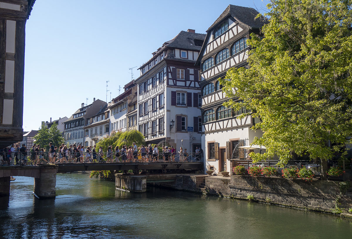 Ensuite, hop on enjambe le Pont du Faisan pour traverser la rivière de l’Ill. C’est un pont mobile construit en 1888, qui s’ouvre régulièrement pour laisser passer les bateaux-mouches. Il remplace l’antique pont en bois du XIVe siècle.