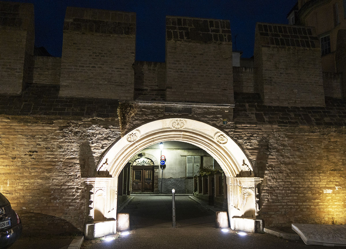 Un peu plus loin dans le quartier, juste derrière le pont et l’église Sainte Madeleine, on peut trouver la Porte des Remparts.