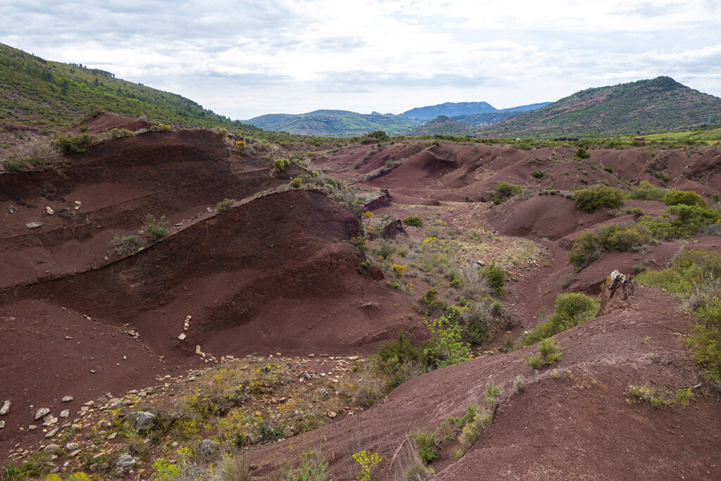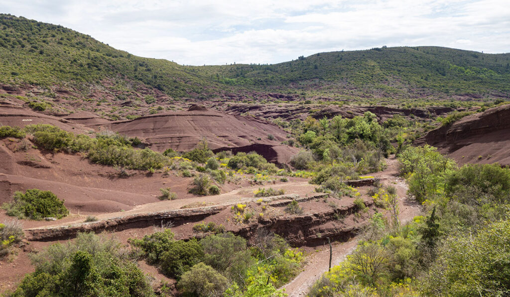 Ce sol rouge si particulier, c’est les ruffes. Il s’agit de sédiments argileux datant de plus de 250 millions d’années. Ils sont très riches en oxyde de fer ce qui leur donne cette teinte rouge si particulière. On ne sait plus trop si on se promène sur la planète Mars ou au milieu d’un désert américain, et tout ça, en plein cœur de l’Hérault! 🙂