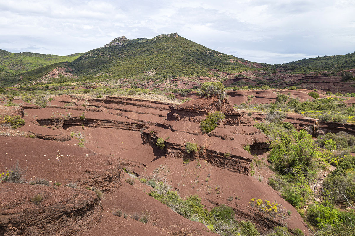 Ce sol rouge si particulier, c’est les ruffes. Il s’agit de sédiments argileux datant de plus de 250 millions d’années. Ils sont très riches en oxyde de fer ce qui leur donne cette teinte rouge si particulière. On ne sait plus trop si on se promène sur la planète Mars ou au milieu d’un désert américain, et tout ça, en plein cœur de l’Hérault! 🙂