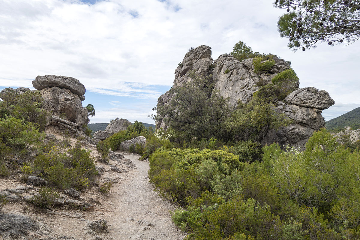 On peut évidemment se perdre avec plaisir dans ce labyrinthe minéral. Il y a plusieurs sentiers qui serpentent au milieu de cette mer de rochers aux formes improbables. Certains suivent le tracé historique des anciens charbonniers qui transportaient leur combustible depuis le mont Liausson jusqu’à la route de Mourèze. Quelque soit votre choix, on ne peut pas vraiment se perdre, et cet espace est comme un grand terrain de jeux à explorer.