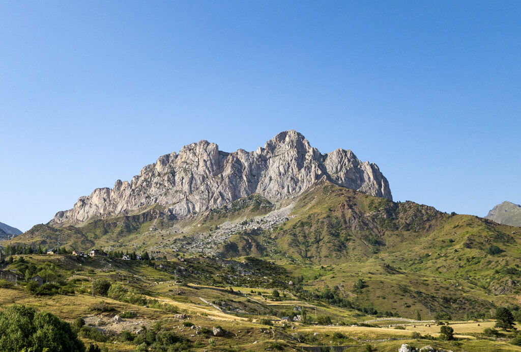 En faisant une petite boucle par le sud, on peut rejoindre la vallée suivante, la Vallée de Tena, qui rejoint la France par le Col de Pourtalet (1794m). Ce col fait le lien avec la vallée d’Ossau. Si je vous parle de la Vallée de Tena, c’est car là aussi il y a quelques belles choses à voir 🙂 Tout d’abord le sommet emblématique de la région, le massif de la Pena Foratata (2321m) qui se détache nettement du paysage.