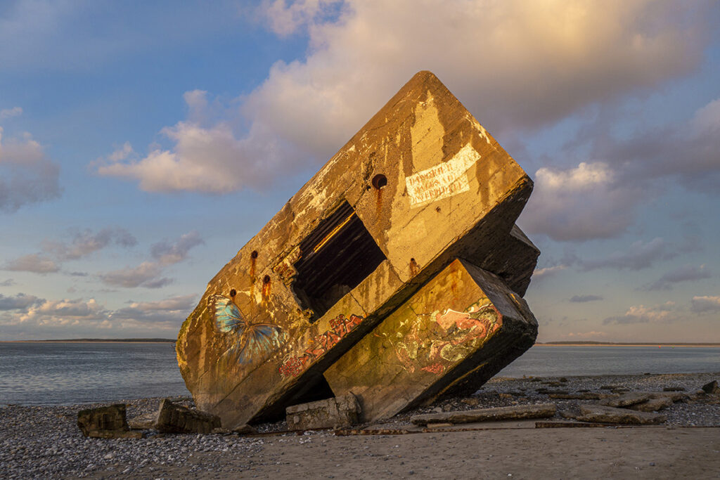 Au Hourdel, impossible de manquer le Bunker le long de la route blanche. Cet immense bloc de béton abandonné sur la plage intrigue. C’est un des éléments du Mur de l’Atlantique érigé par les Allemands pendant la Seconde Guerre Mondiale. Cet énorme blockhaus est officiellement la Casemate R612 composé de 380m3 de béton armé quasiment indestructible.