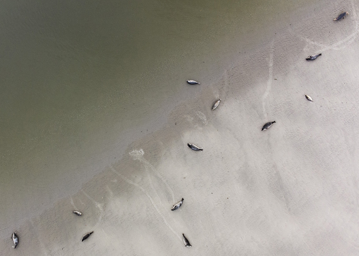 On compte environ 400 phoques veaux-marins et 200 phoques gris. Les phoques gris, plus foncés et tachetés, peuvent atteindre jusqu’à 3m de long et 300kg!