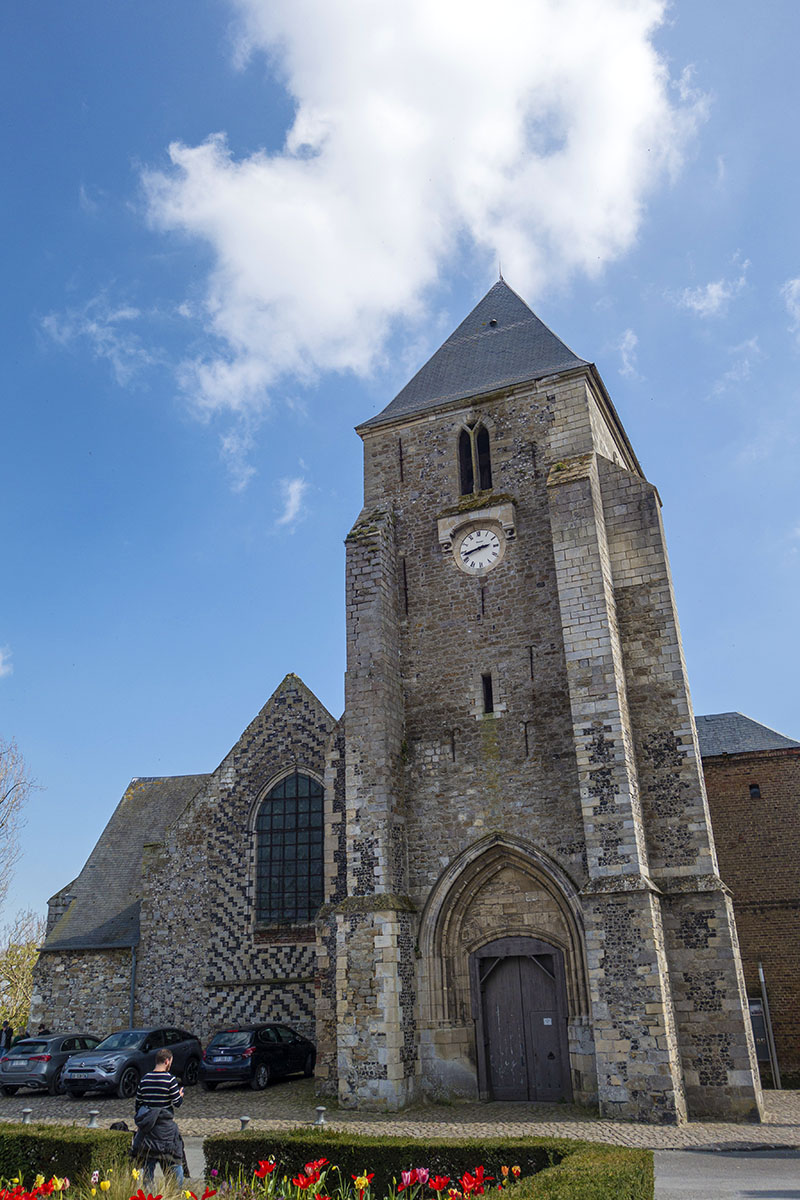 Elle possède des murs avec un damier de pierre calcaire et de silex. C’est quelque chose qu’on retrouve souvent sur le littoral en Picardie.