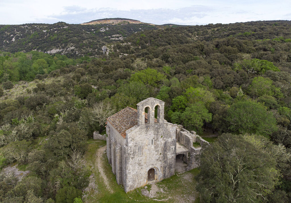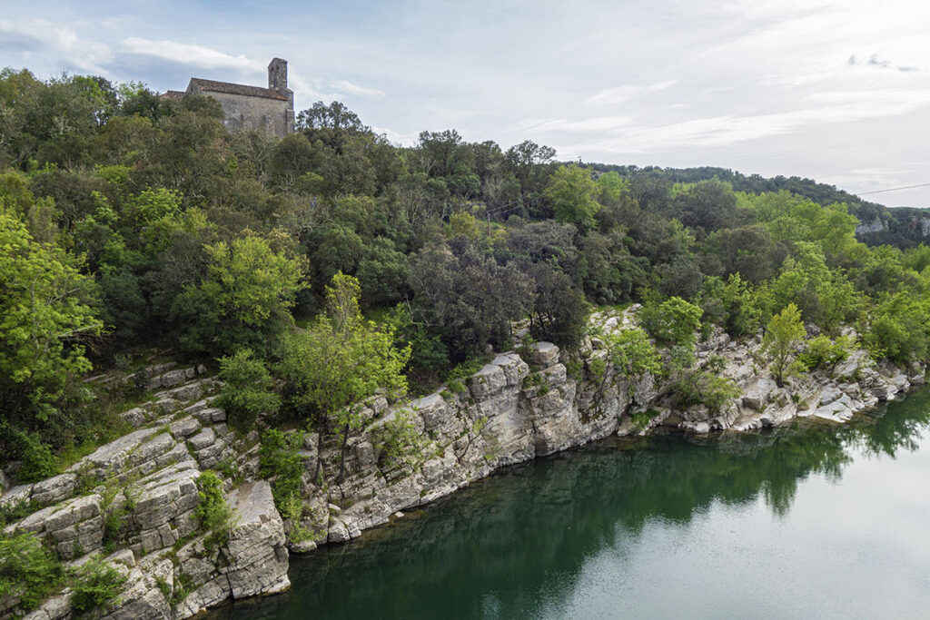 Un peu plus en hauteur, il y a la Chapelle Saint-Étienne d’Issensac, qui est bien plus ancienne que le pont (de deux siècles). À l’origine, c’était l’église d’un minuscule village. Mais le petit bourg a été incendié par les protestants au XVIIIe siècle. Abandonné par les habitants, il n’en reste plus que quelques ruines autour de l’église devenue chapelle. Désacralisée, elle est parfois ouverte à la visite lors des Journées du Patrimoine ou lors d’animations au mois d’aout. Le pont et la chapelle sont tous les deux classés Monuments Historiques.